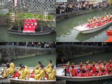 水上パレードでお雛様や